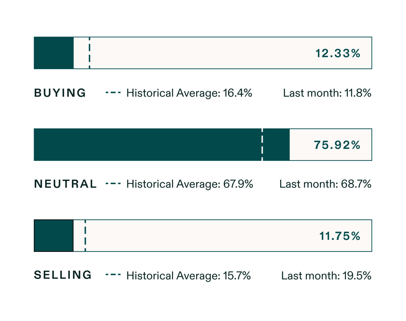 Net trading activity was near historic lows with investors staying on the sidelines as markets rallied