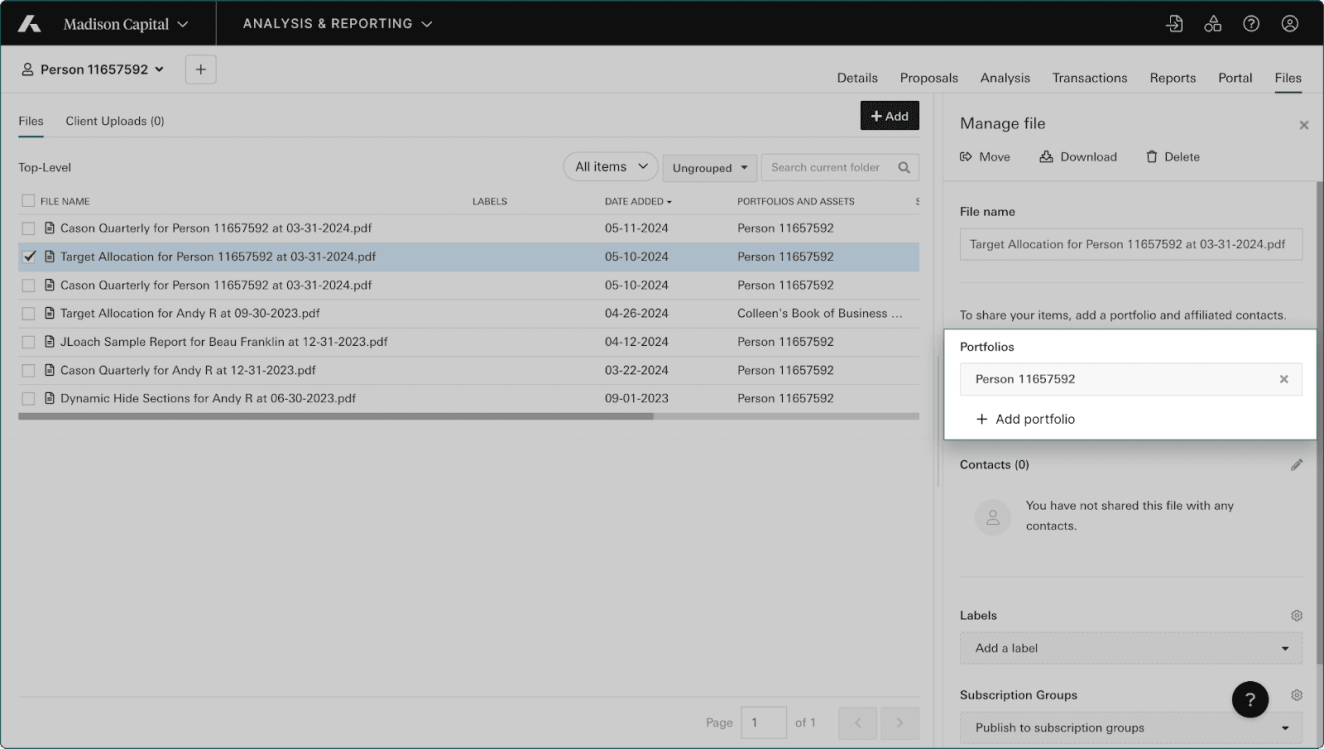 Both small and large reports can now progress simultaneously, enabling you to run smaller reports without waiting for or disrupting your larger reports. Now, we also automatically associate generated reports with their corresponding portfolios – no additional manual effort required.