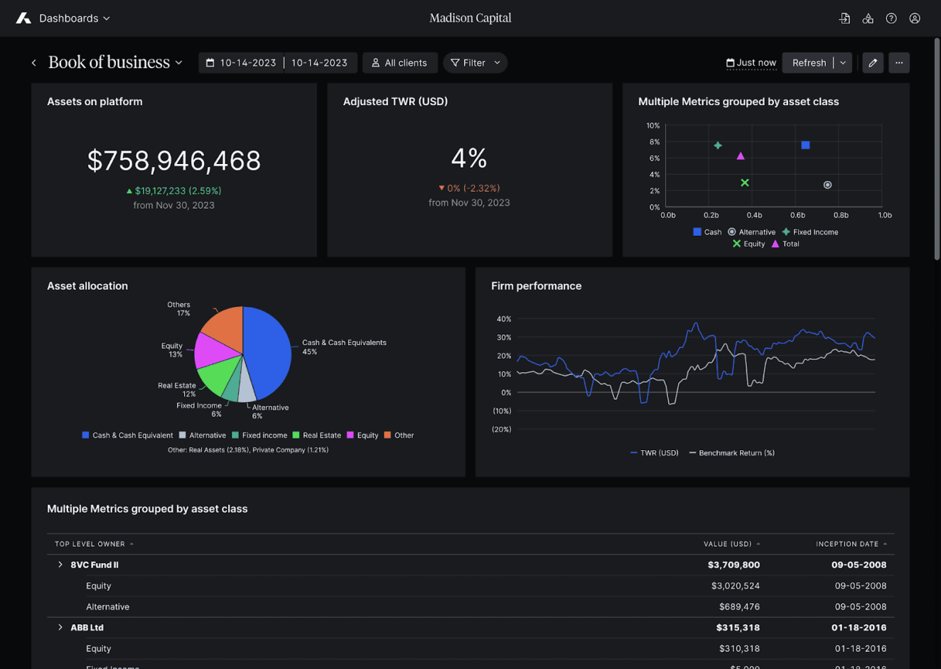 Learn how Addepar client View Capital leverages Dashboards to assess and address firmwide goals and objectives on our blog.