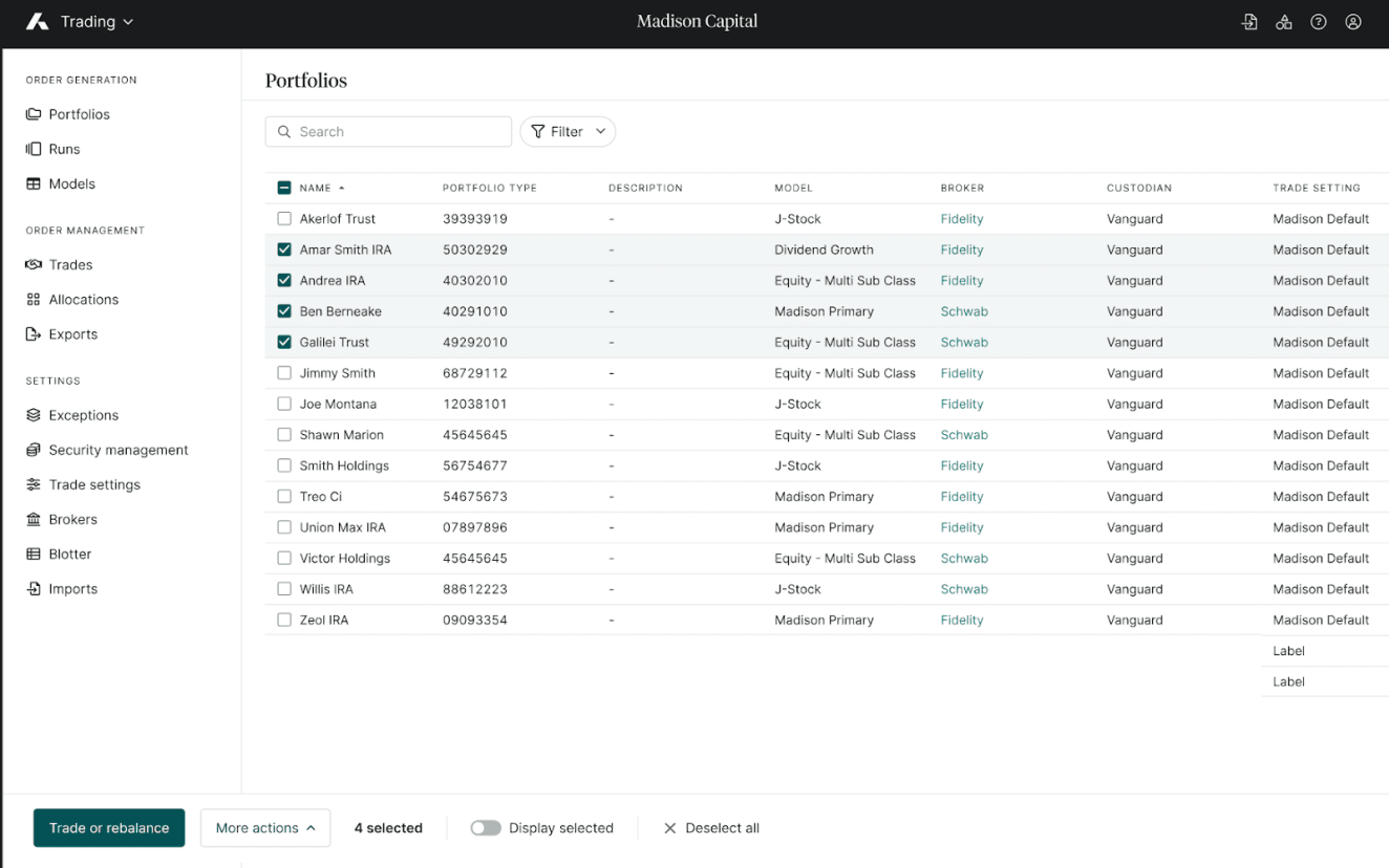 Addepar Trading is a new, comprehensive solution that simplifies and streamlines all aspects of trading and rebalancing for portfolios. As an extension of the Addepar ecosystem, Addepar Trading enhances trading operations from inception to execution with a unified dataset, streamlined navigation and efficient workflows.