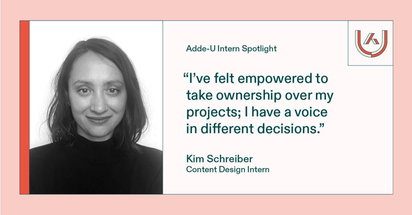 “One piece of advice I would offer to future interns is to focus on goal setting. That was really helpful in the beginning of my internship, because there was a lot of terminology I had to learn in order to do my work: not only in the product, but also in content design, tech, and finance languages. It was helpful for me to think about my end goals and intake learnings through what would be most valuable to my project.” - Kim Schreiber