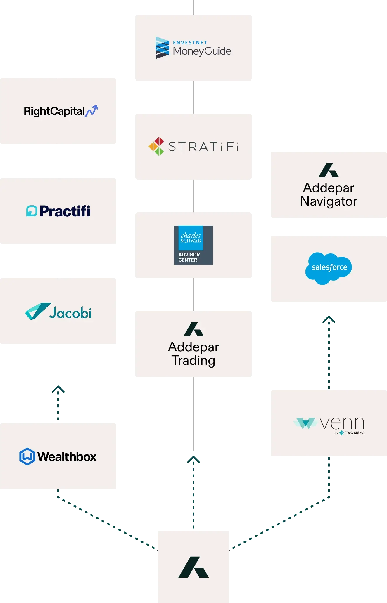 Connect Addepar to all the tools you need to run your business. We’ve pre-built many popular and useful integrations with our partner ecosystem of market leading technology providers. Optimize your tech stack and increase your productivity, so you deliver the best possible investor experience.