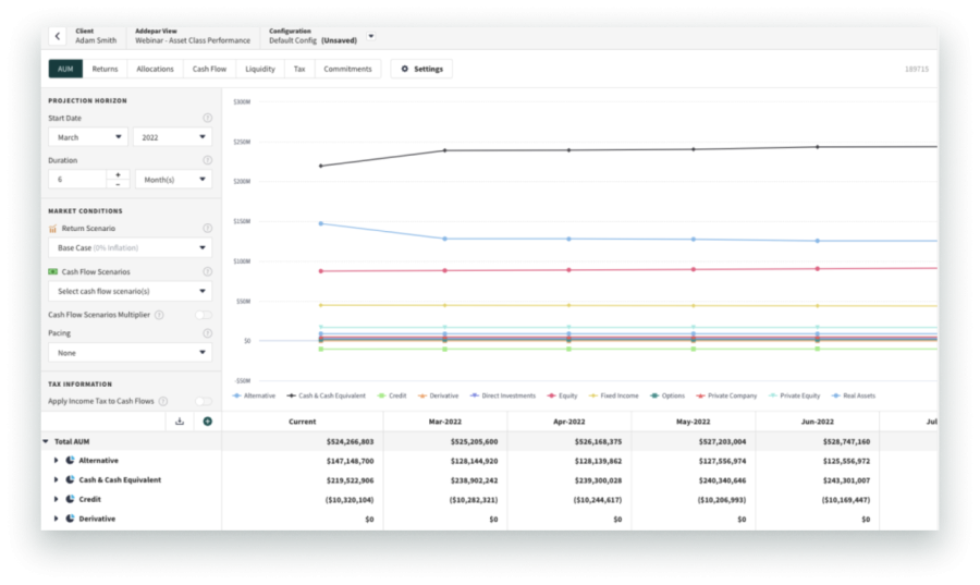 Model asset allocations–including illiquid assets–to optimally achieve your client’s goals, objectives and cash flow requirements.